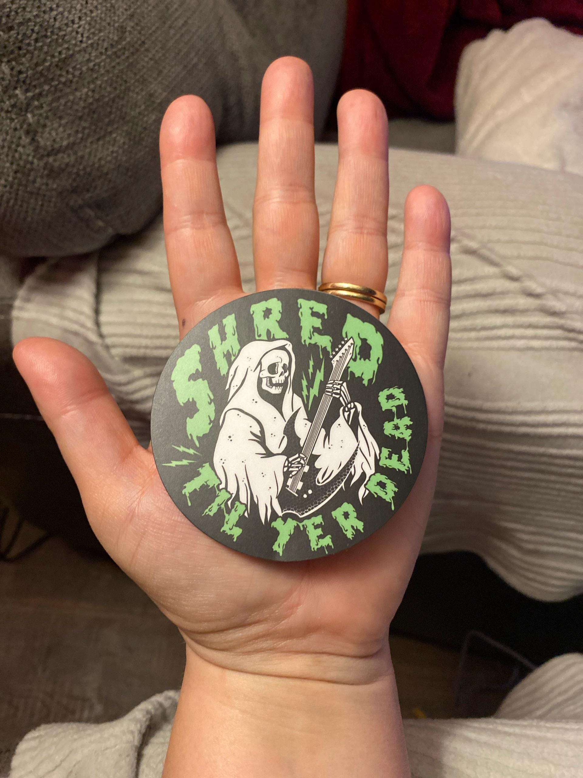 The sticker is sick! My husband is gonna love it! This will be going in his stocking and he is a guitar player for a living and is gonna love this. The size is even better than I thought. It is nice and thick and has a good Matte finish. It arrived quickly and I appreciate that.